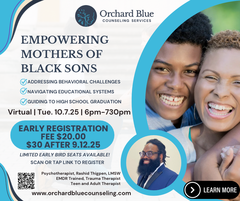 Join us for a live, virtual workshop designed just for you! -“Empowering Mothers of Black Sons“!